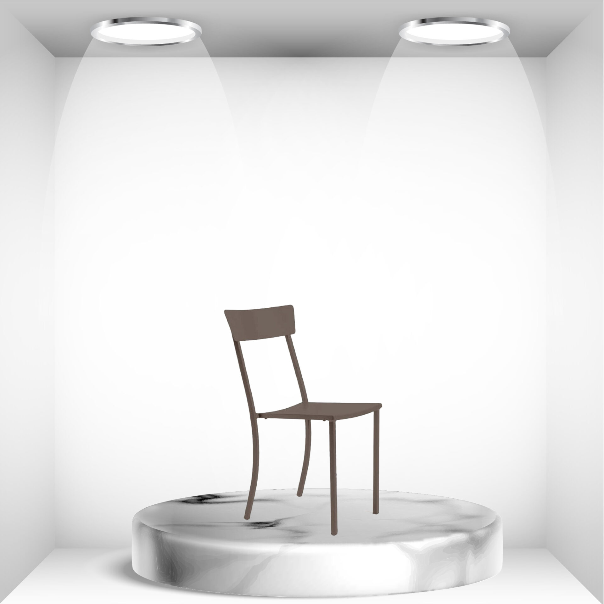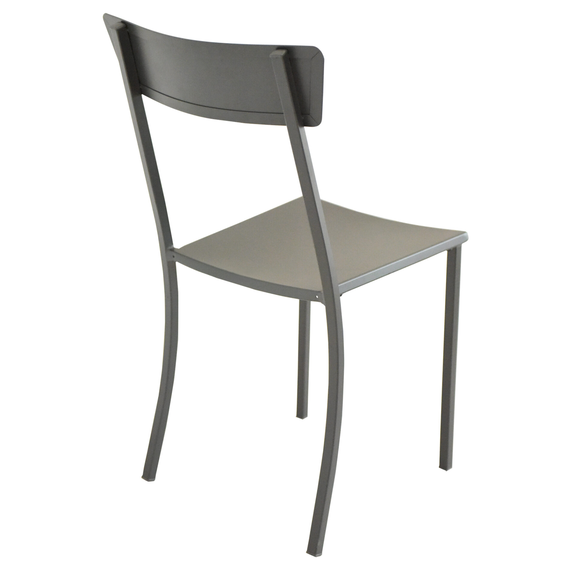 Realizzate in metallo verniciato a polvere, le sedie sono resistenti a urti, graffi e agenti atmosferici.