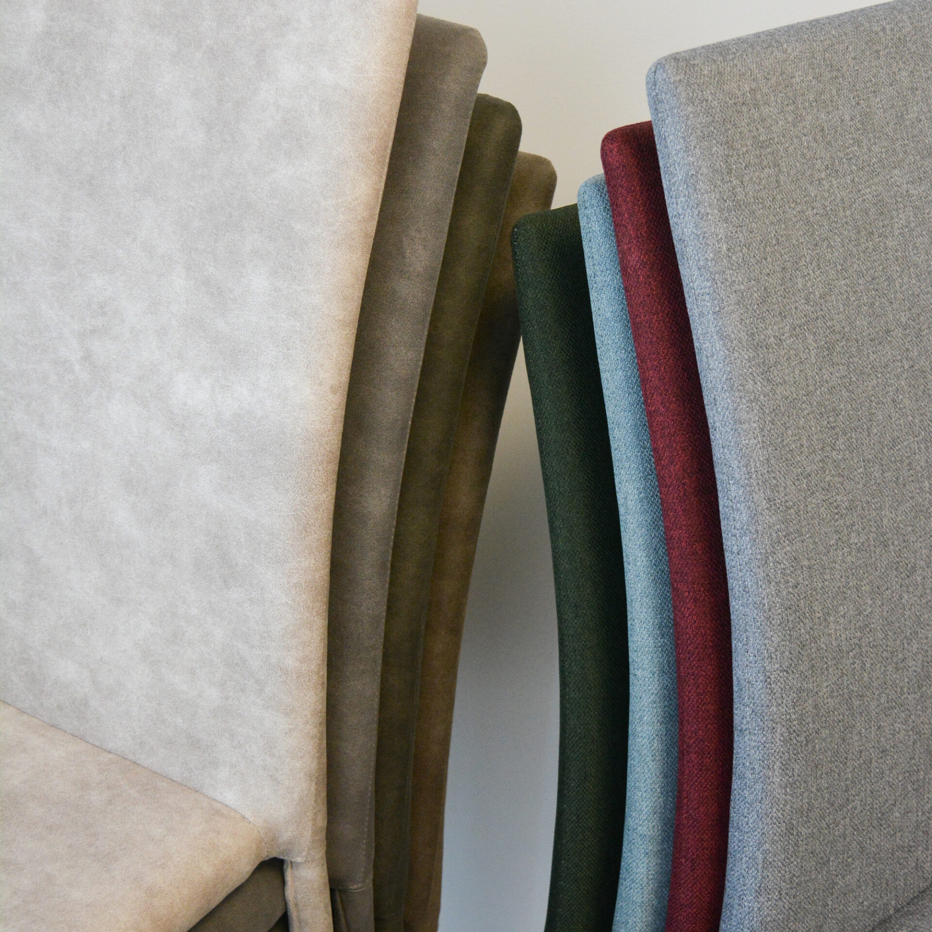 Realizzate in tessuto Mozart di alta qualità, morbido e piacevole al tatto, queste sedie uniscono design essenziale e linee pulite per un look versatile e raffinato adatto a qualsiasi ambiente.