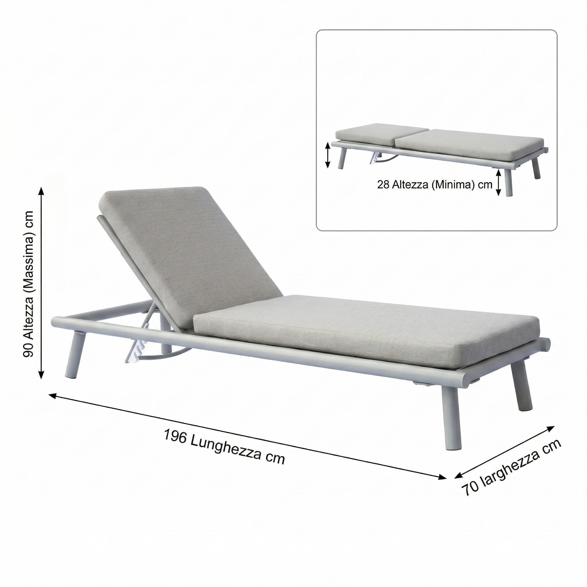 La struttura in alluminio colore creta unita al textilene sabbia garantisce leggerezza, resistenza e durata nel tempo, mentre il cuscino beige idrorepellente assicura comfort e praticità anche in ambienti outdoor. Perfetto per momenti di relax all’aperto con stile e comodità.