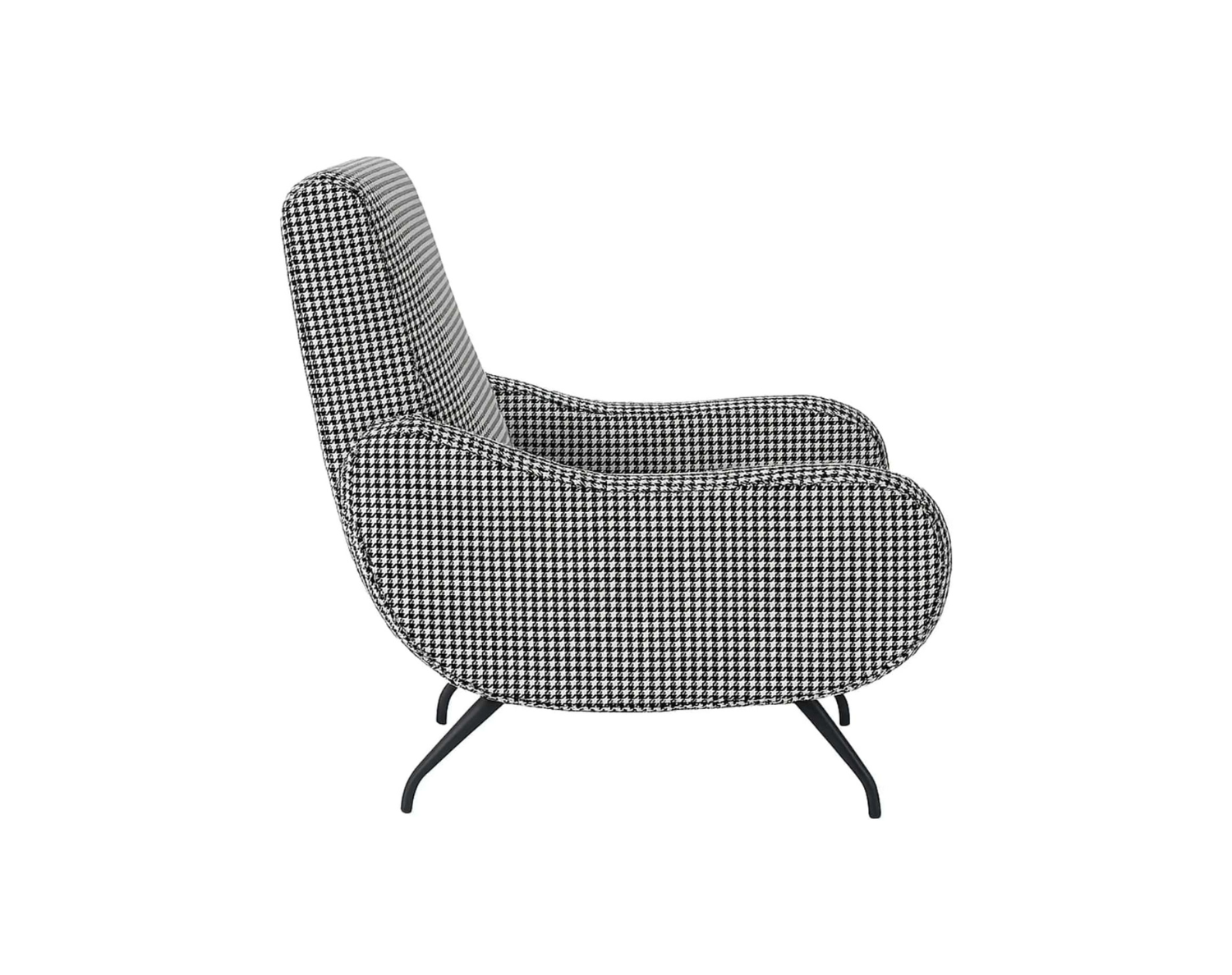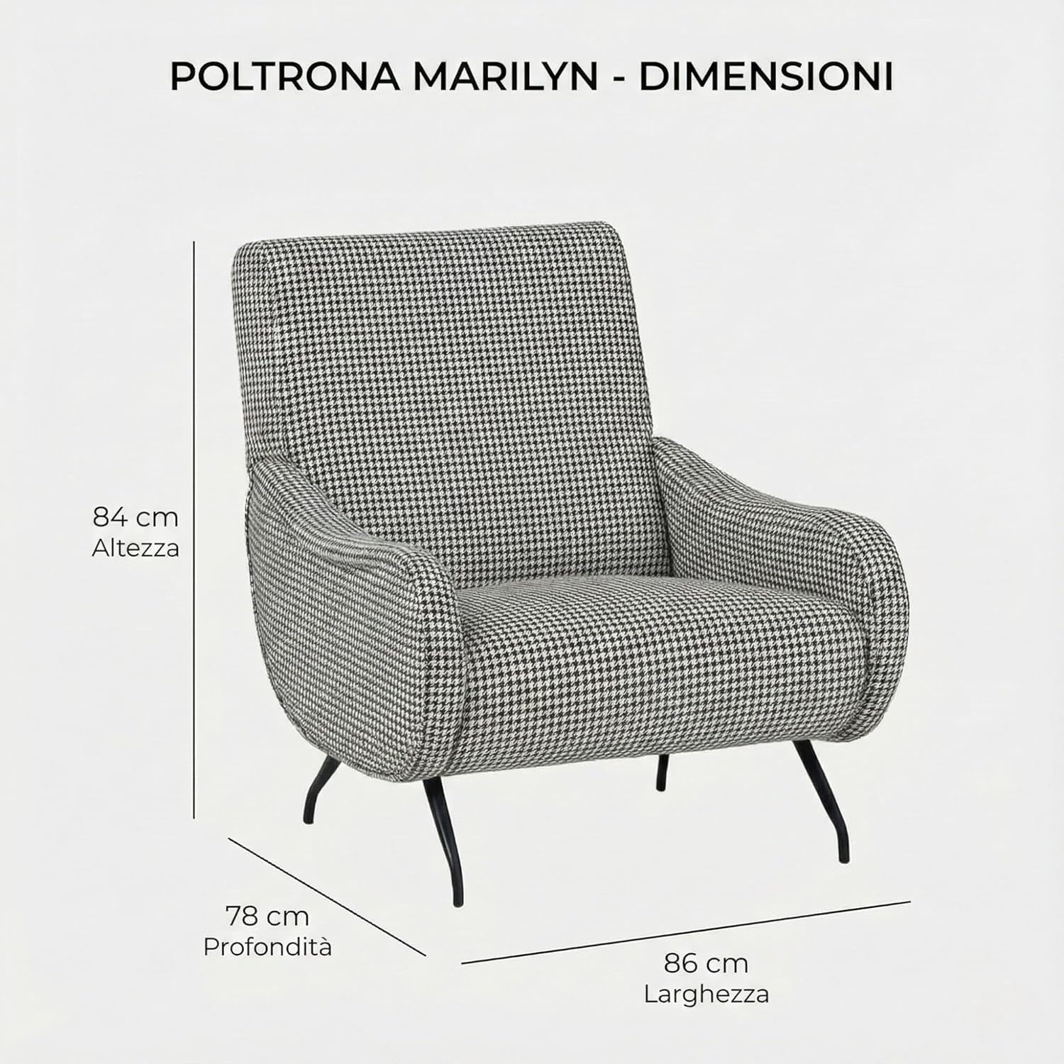 Il design della poltrona Cribel Marilyn è caratterizzato da linee pulite e una silhouette avvolgente che invita al relax. Il tessuto Pied de Poule, con la sua texture raffinata e la combinazione cromatica di bianco e nero, è il protagonista indiscusso, scelto per la sua resistenza e la sua capacità di mantenere inalterata la bellezza nel tempo. La struttura interna, robusta e sapientemente costruita, garantisce stabilità e durabilità, mentre l’imbottitura generosa assicura un comfort superiore. Ogni dettaglio, dalla cucitura precisa alla finitura dei piedini, è stato pensato per esaltare la qualità artigianale e l’attenzione che Cribel dedica alla creazione dei suoi prodotti, rendendo questa poltrona un investimento duraturo nel tempo.
