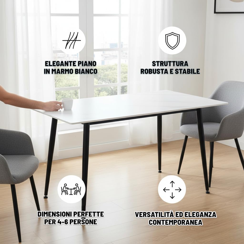 Oltre alla sua innegabile bellezza, il Tavolo Iago 200 Bianco offre un comfort e una funzionalità superiori. Le sue dimensioni generose permettono di ospitare comodamente un numero elevato di persone, rendendolo perfetto per cene, riunioni o semplicemente per godere di momenti di relax in compagnia. La superficie liscia e resistente è ideale per ogni tipo di attività, dalla preparazione dei pasti allo studio, garantendo sempre un supporto stabile e affidabile. La facilità di assemblaggio e la resistenza all’usura sono ulteriori vantaggi che rendono questo tavolo una scelta pratica e duratura. È un investimento nel benessere quotidiano, capace di trasformare ogni pasto in un’esperienza più piacevole e ogni incontro in un ricordo speciale.