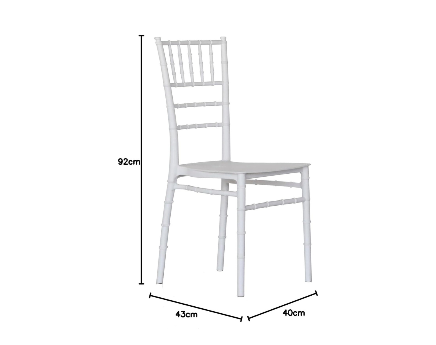 • Dimensioni sedie: 40D x 43W x 92H cm