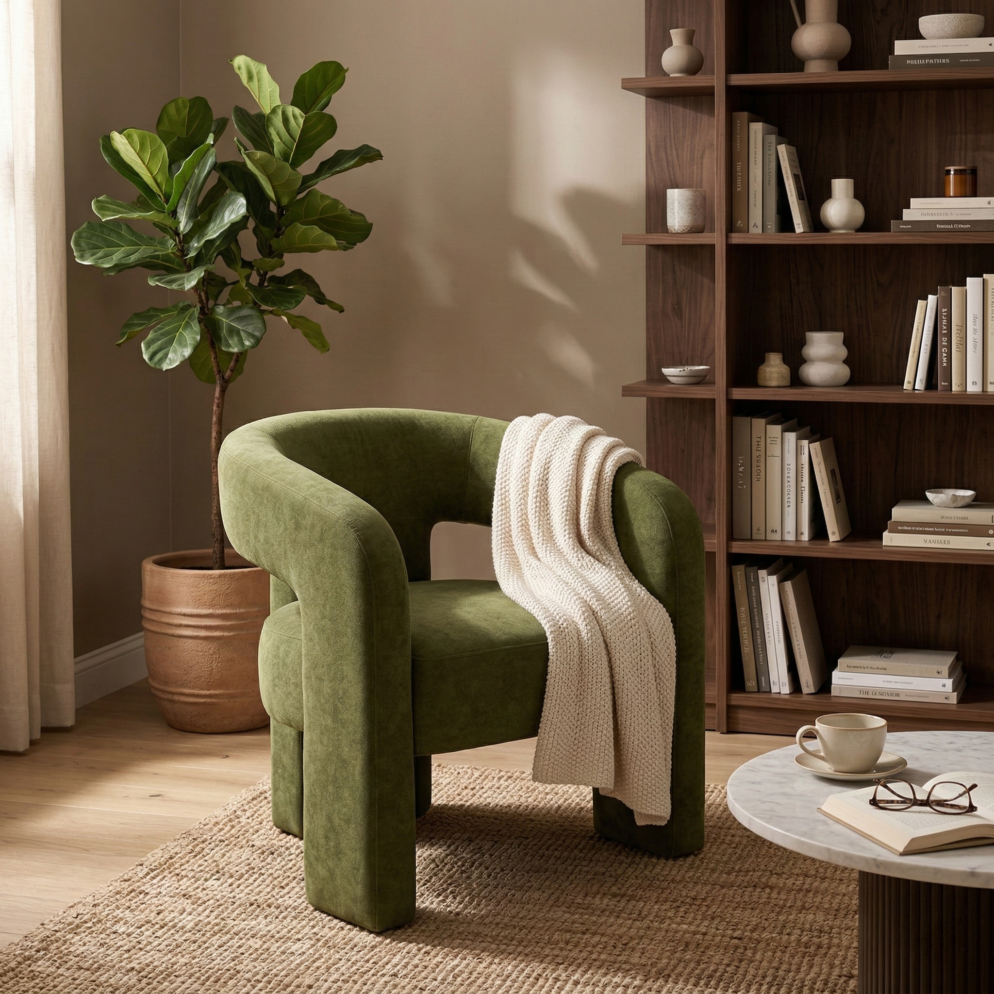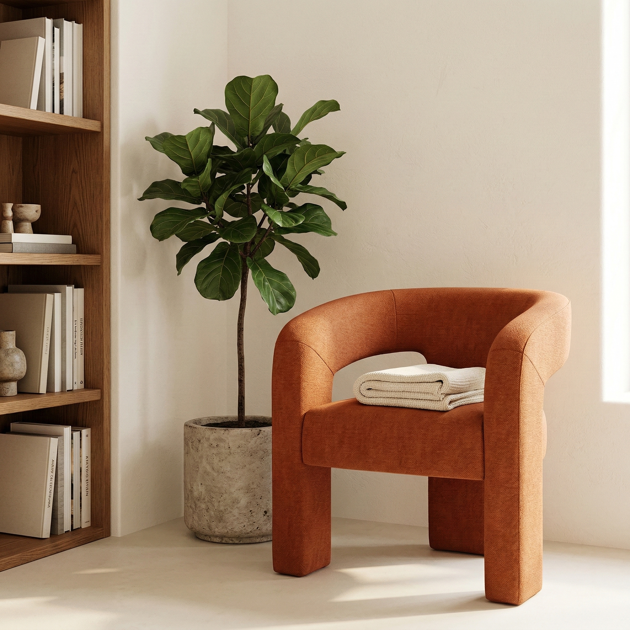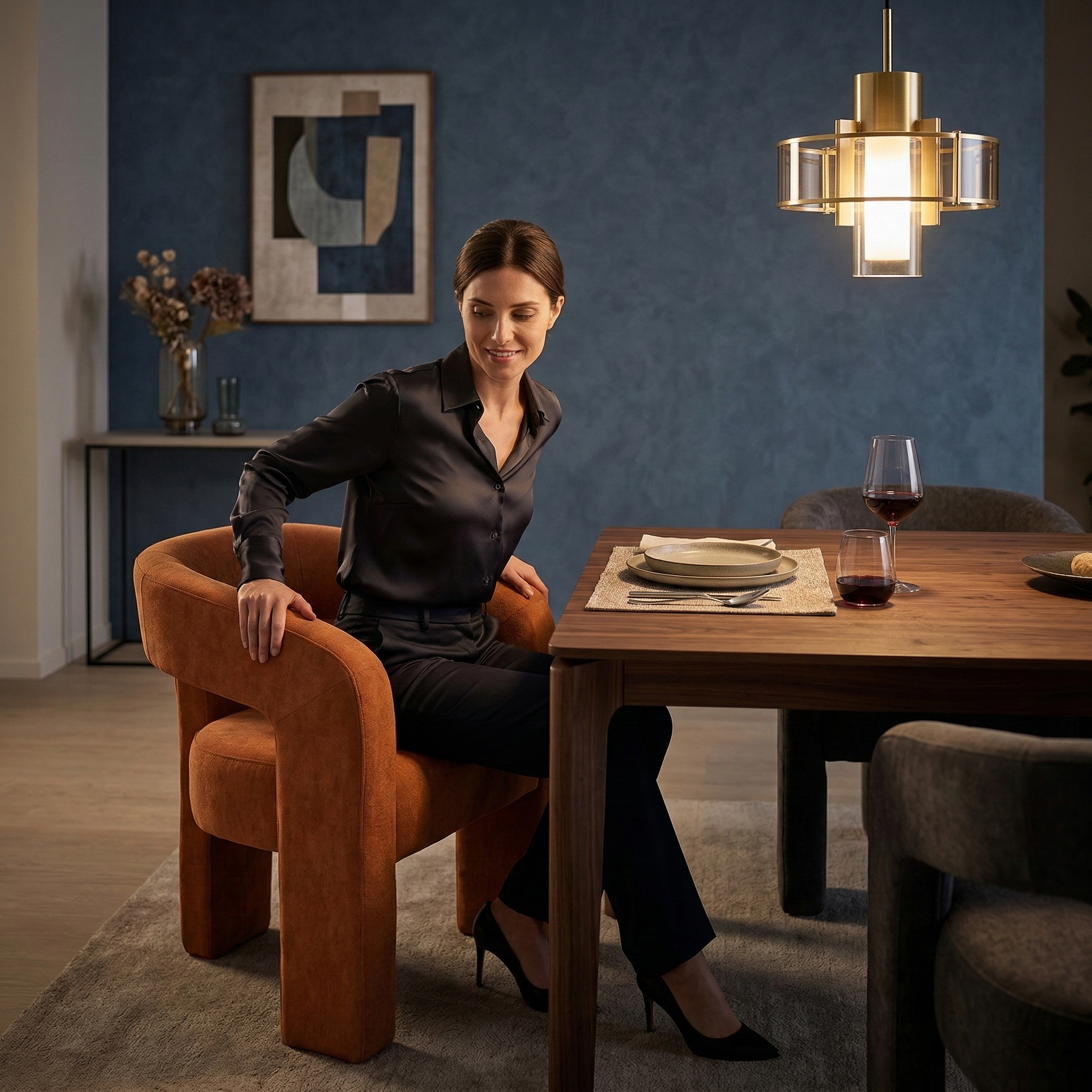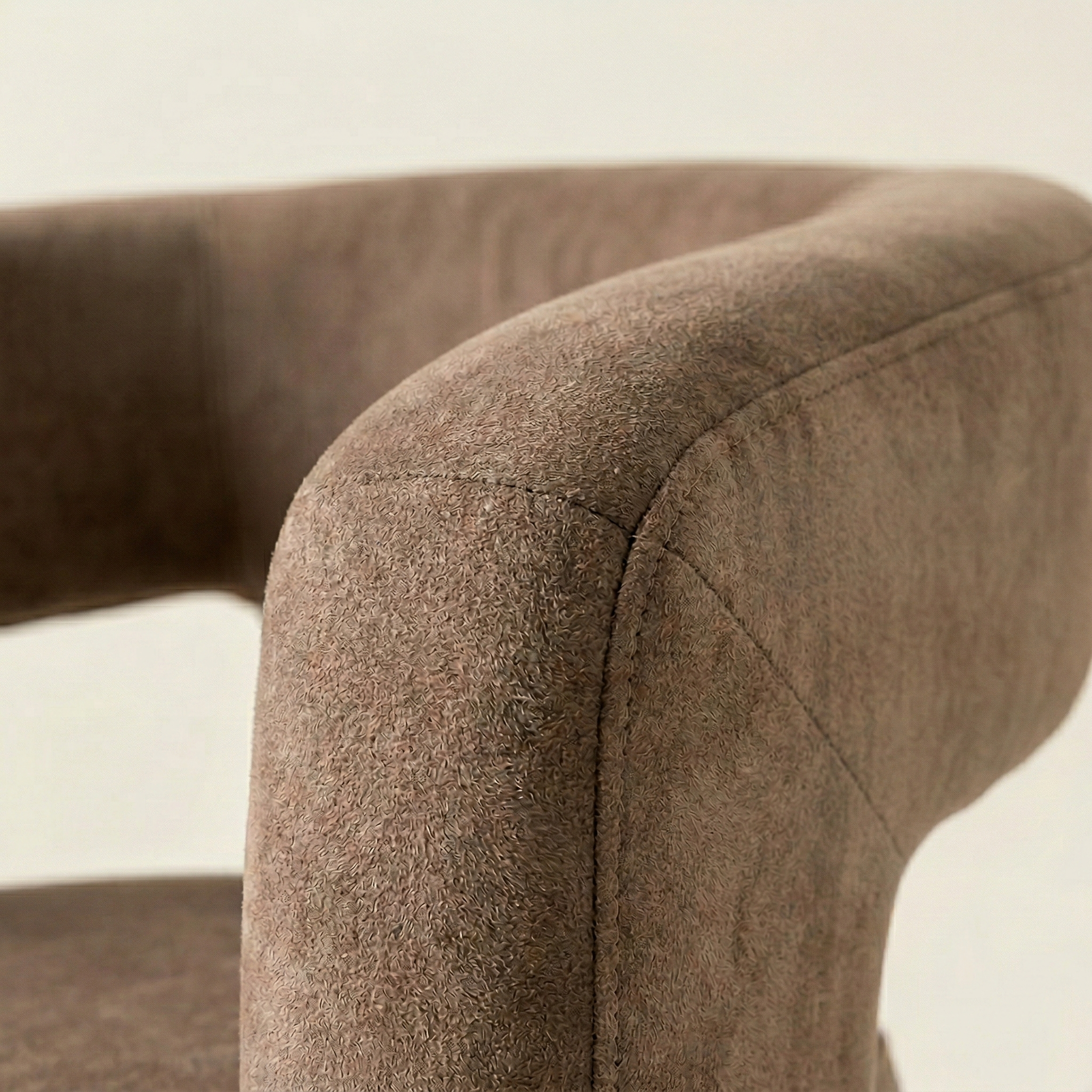 Questa poltrona da pranzo unisce comfort e stile grazie a una struttura completamente imbottita con volumi pieni e continui. Lo schienale curvo si fonde armoniosamente con i braccioli, creando un elemento fluido che sostiene la schiena in modo ottimale. La seduta ampia e accogliente assicura un comfort duraturo, mentre le gambe integrate nella struttura garantiscono solidità e un aspetto elegante e monolitico.