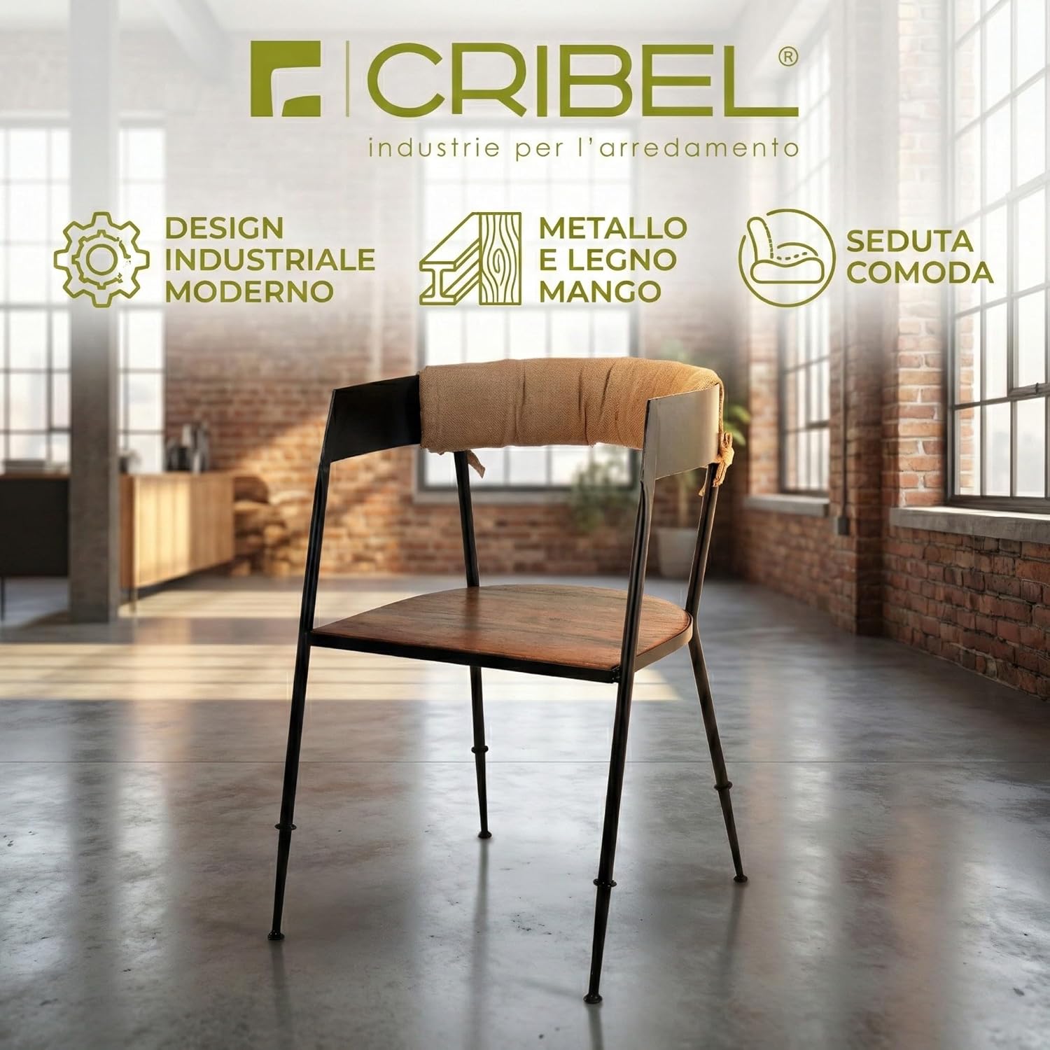 La sedia di CRIBEL unisce una solida struttura in metallo nero a una seduta in legno di mango, creando un perfetto equilibrio tra stile industriale e calore naturale. Il design moderno e raffinato la rende ideale per cucine, sale da pranzo e soggiorni contemporanei.