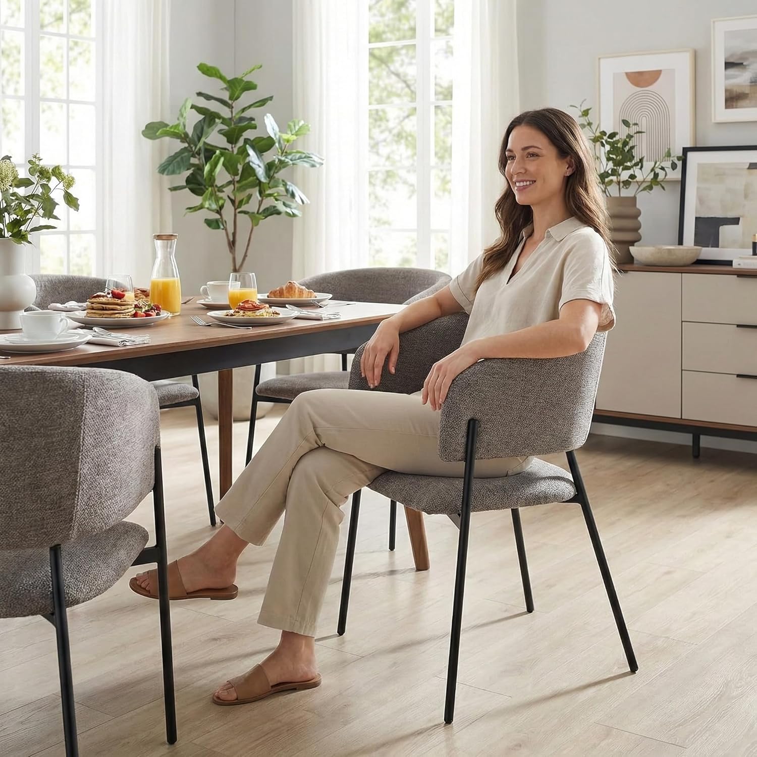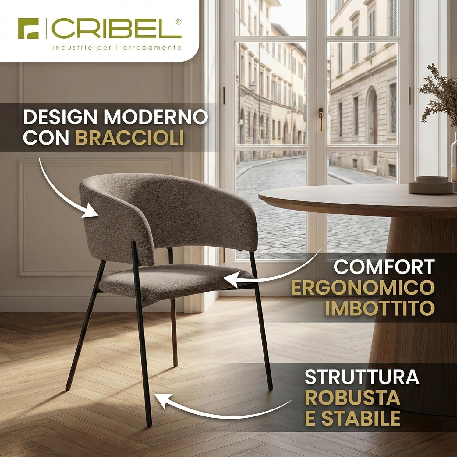Il set di poltroncine Brigitte CRIBEL unisce eleganza moderna e comfort quotidiano, risultando ideale per soggiorno, cucina, sala da pranzo o ambienti bar. Il design raffinato, con rivestimento in tessuto e gambe in metallo nero, si adatta facilmente agli interni contemporanei.