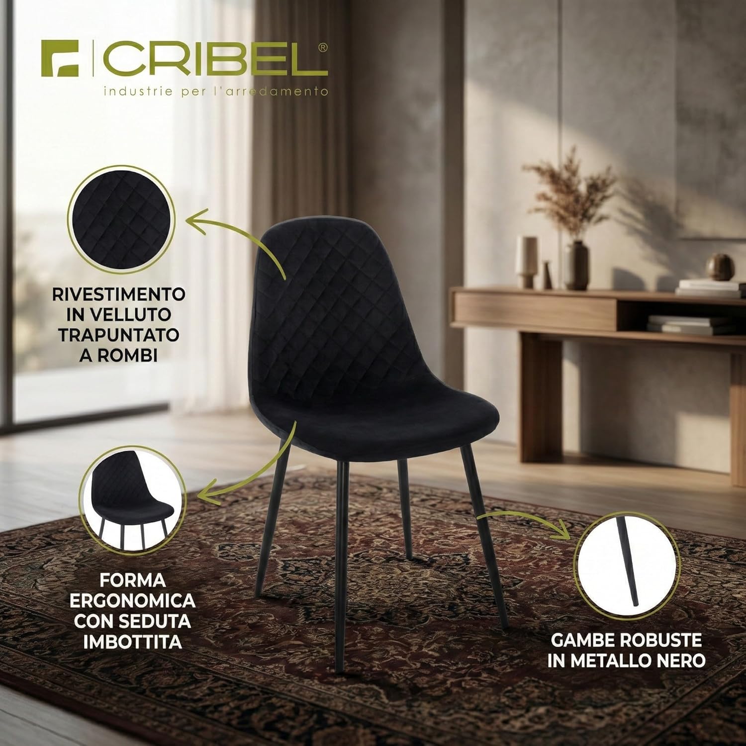 Il Set di 4 nuove sedie Lena di Cribel rappresenta un’aggiunta di stile e funzionalità per qualsiasi ambiente moderno. Con un design che fonde eleganza e praticità, queste sedie sono pensate per arricchire la sala da pranzo, la cucina o lo studio, offrendo un tocco di raffinatezza contemporanea. La scelta del velluto, unita alla robustezza delle gambe nere, crea un contrasto visivo accattivante, rendendo ogni sedia un vero e proprio elemento d’arredo. Questo set è l’ideale per chi cerca soluzioni d’arredo che combinino estetica ricercata e un’esperienza d’uso superiore, trasformando ogni momento trascorso a tavola o in conversazione in un’occasione speciale.