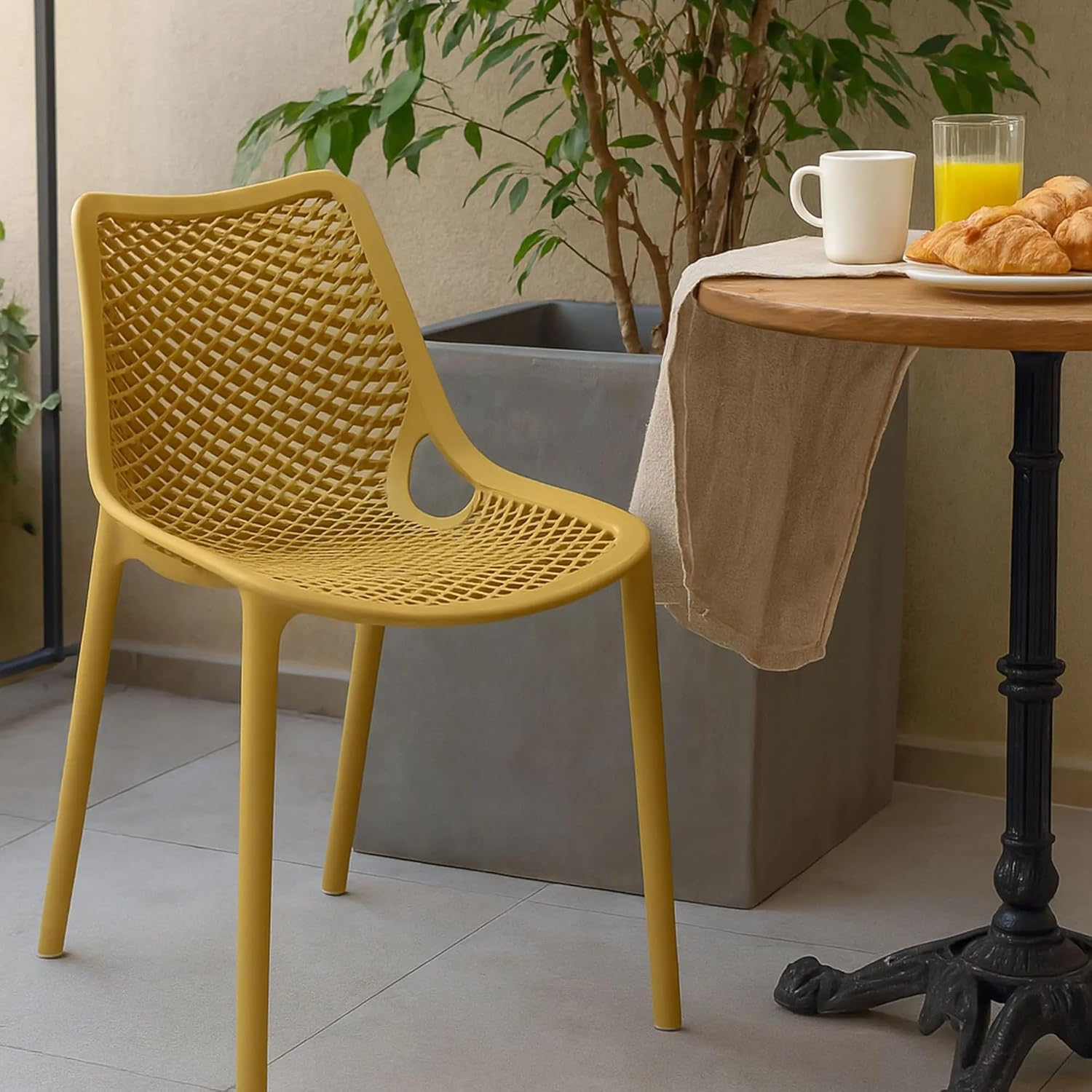 Il comfort offerto dal Set di 4 sedie Braga è una delle sue qualità più apprezzate. La flessibilità intrinseca del polipropilene, unita alla texture dell’intreccio, assicura una seduta confortevole che si adatta al corpo, riducendo la necessità di cuscini aggiuntivi. La loro funzionalità si estende alla facilità di pulizia e manutenzione, un aspetto fondamentale per l’arredamento di ambienti sia interni che esterni. Un semplice panno umido è sufficiente per mantenere le sedie in condizioni impeccabili, preservandone la bellezza nel tempo. I vantaggi di questo set includono la sua durabilità, la resistenza agli elementi e la capacità di integrarsi armoniosamente in qualsiasi stile d’arredo, dal più classico al più moderno, offrendo sempre un tocco di classe e praticità.