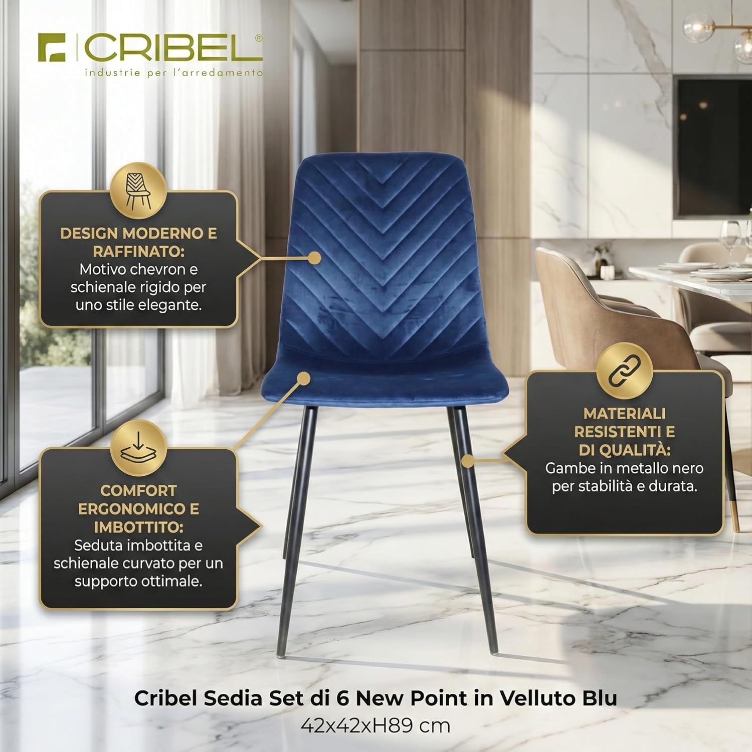 Scegliere un prodotto Cribel significa affidarsi a un marchio che da anni è sinonimo di eccellenza nel settore dell’arredamento. La filosofia di Cribel si basa sulla creazione di mobili che non solo siano esteticamente gradevoli, ma anche funzionali e durevoli, pensati per migliorare la qualità della vita quotidiana. Ogni articolo, incluso il Set di 6 New Point, è il risultato di un’attenta ricerca e sviluppo, combinando le ultime tendenze del design con una manifattura di alta qualità. Optare per Cribel significa investire in pezzi d’arredo che resistono alla prova del tempo, sia in termini di stile che di robustezza, garantendo un valore aggiunto significativo al proprio spazio abitativo. È la scelta ideale per chi cerca un equilibrio perfetto tra innovazione, comfort e affidabilità.