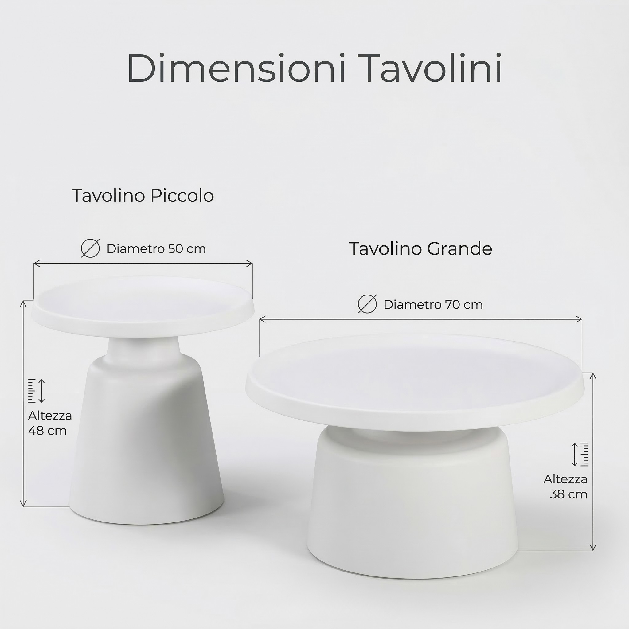 La differenza di dimensioni tra i due tavolini aggiunge dinamismo e versatilità agli spazi living, adattandosi facilmente a salotti, uffici o aree lounge.