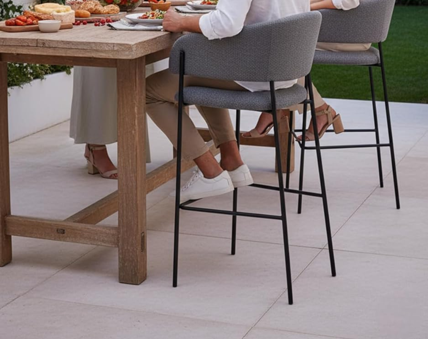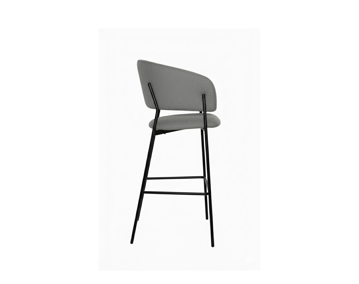 Linee moderne e accoglienti caratterizzano questo sgabello imbottito, rivestito in tessuto e pensato per ambienti cucina o zona snack dal gusto contemporaneo. La struttura slanciata in metallo verniciato nero opaco dona stabilità e leggerezza visiva, mentre il pratico poggiapiedi integrato assicura un comfort ottimale anche durante sedute prolungate.