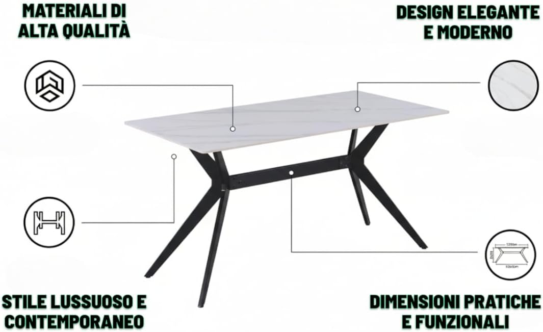 • Dimensioni tavolo: 180 x 90 cm