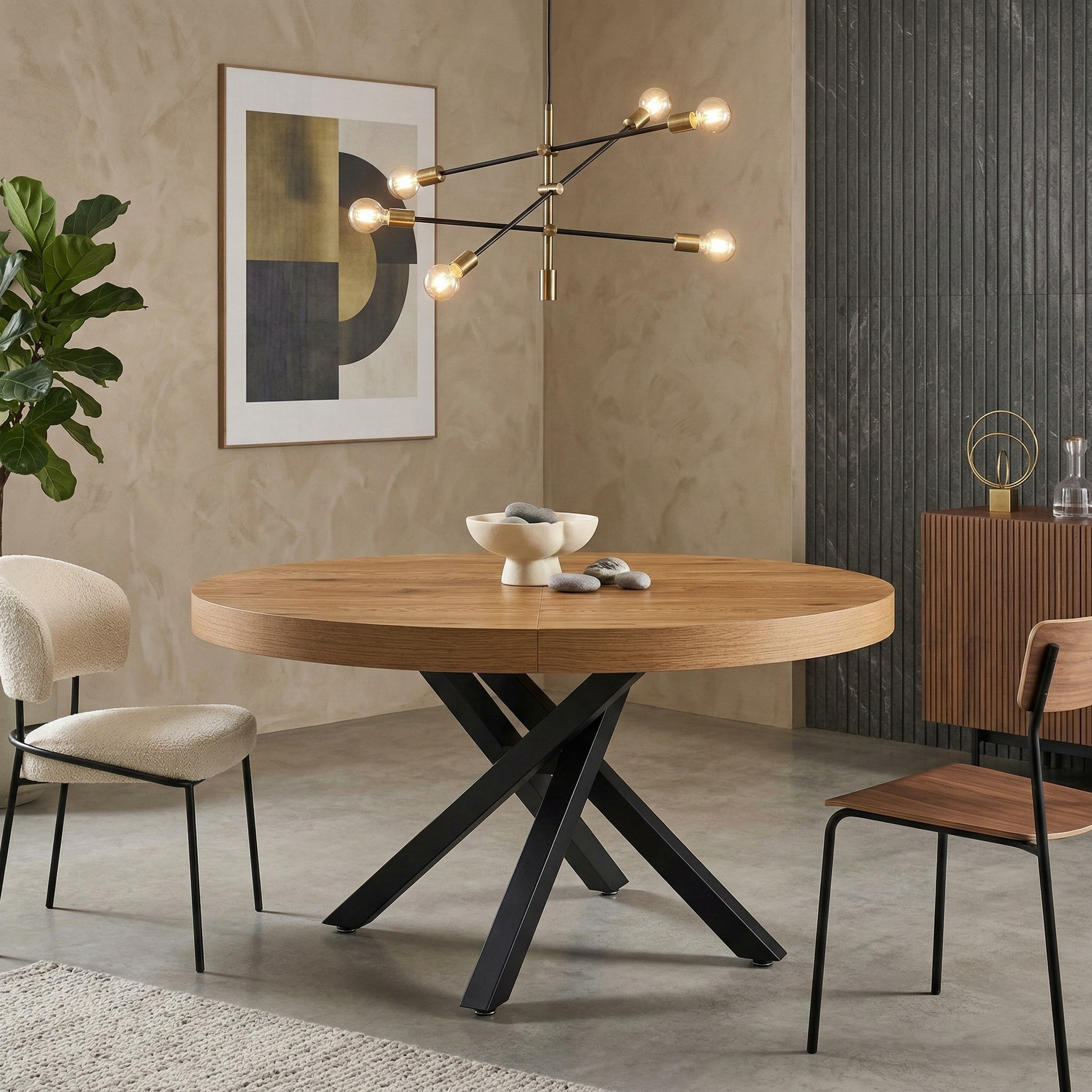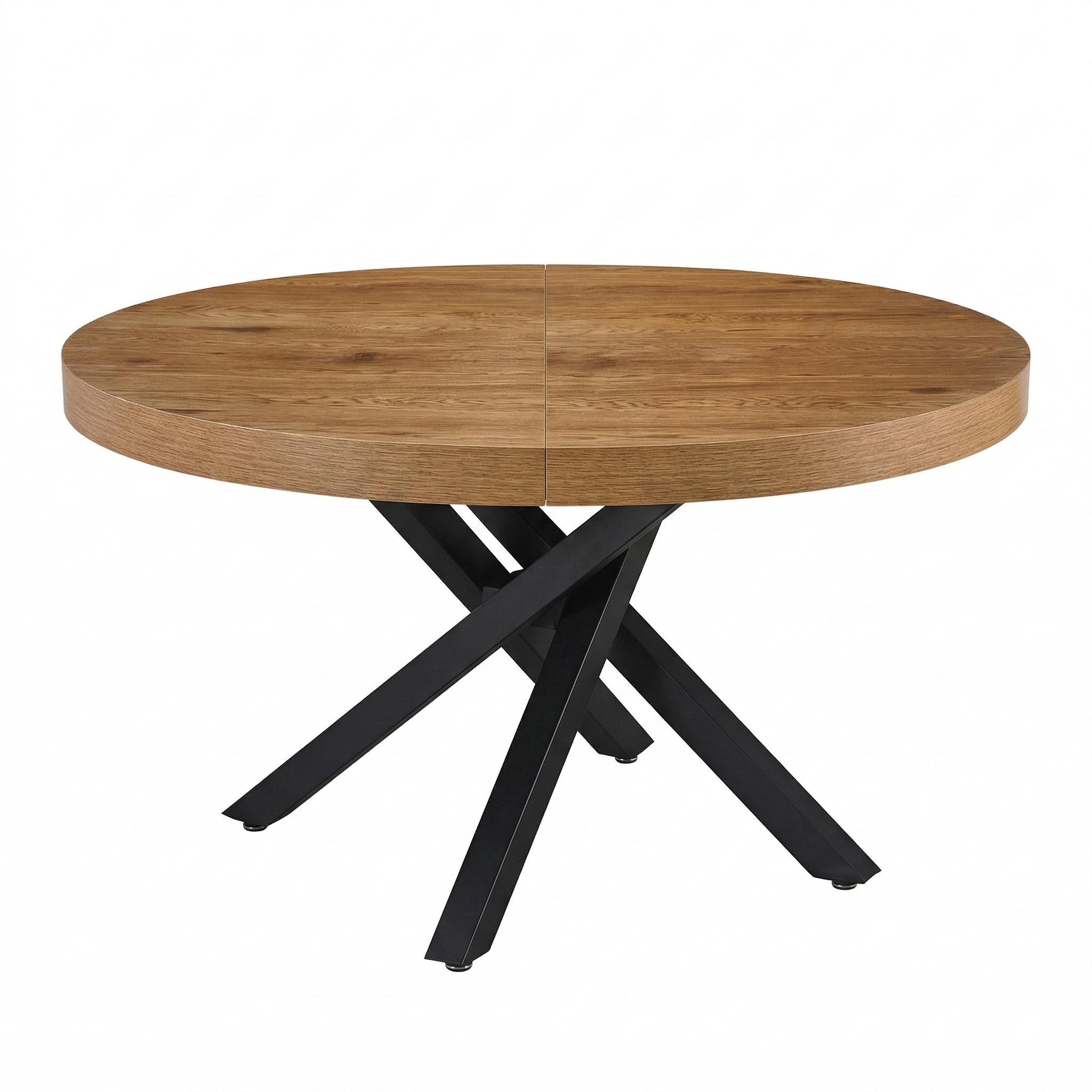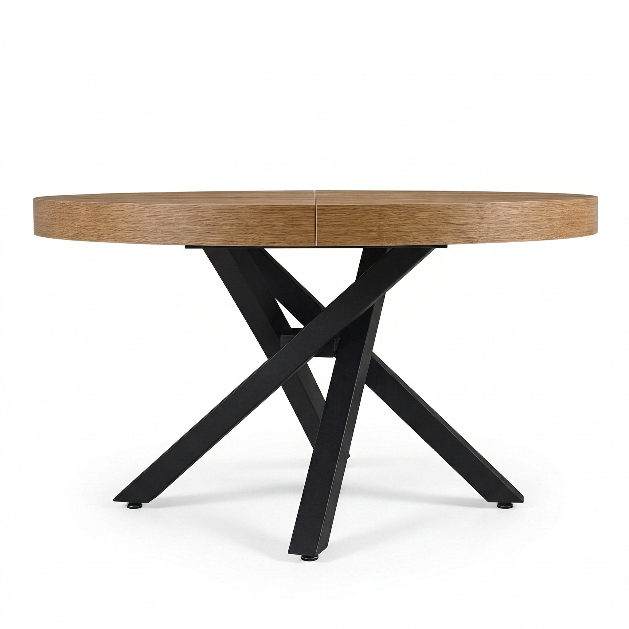 Il tavolo Spirit di Cribel è un elegante tavolo da pranzo allungabile dal design contemporaneo, perfetto per ambienti moderni. Il piano rotondo in nobilitato con bordo pieno unisce estetica e resistenza, mentre la struttura centrale in metallo con gambe incrociate garantisce stabilità e solidità. Grazie al pratico meccanismo di estensione, può ospitare comodamente fino a 8 persone da chiuso e fino a 10 da aperto, offrendo funzionalità e stile per ogni occasione.
