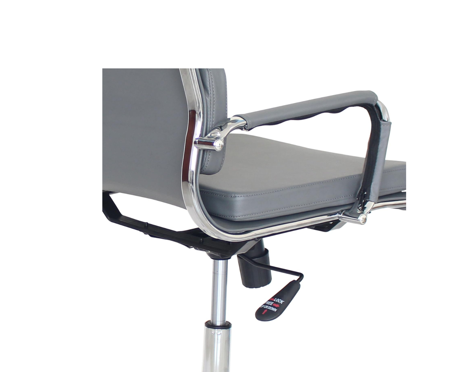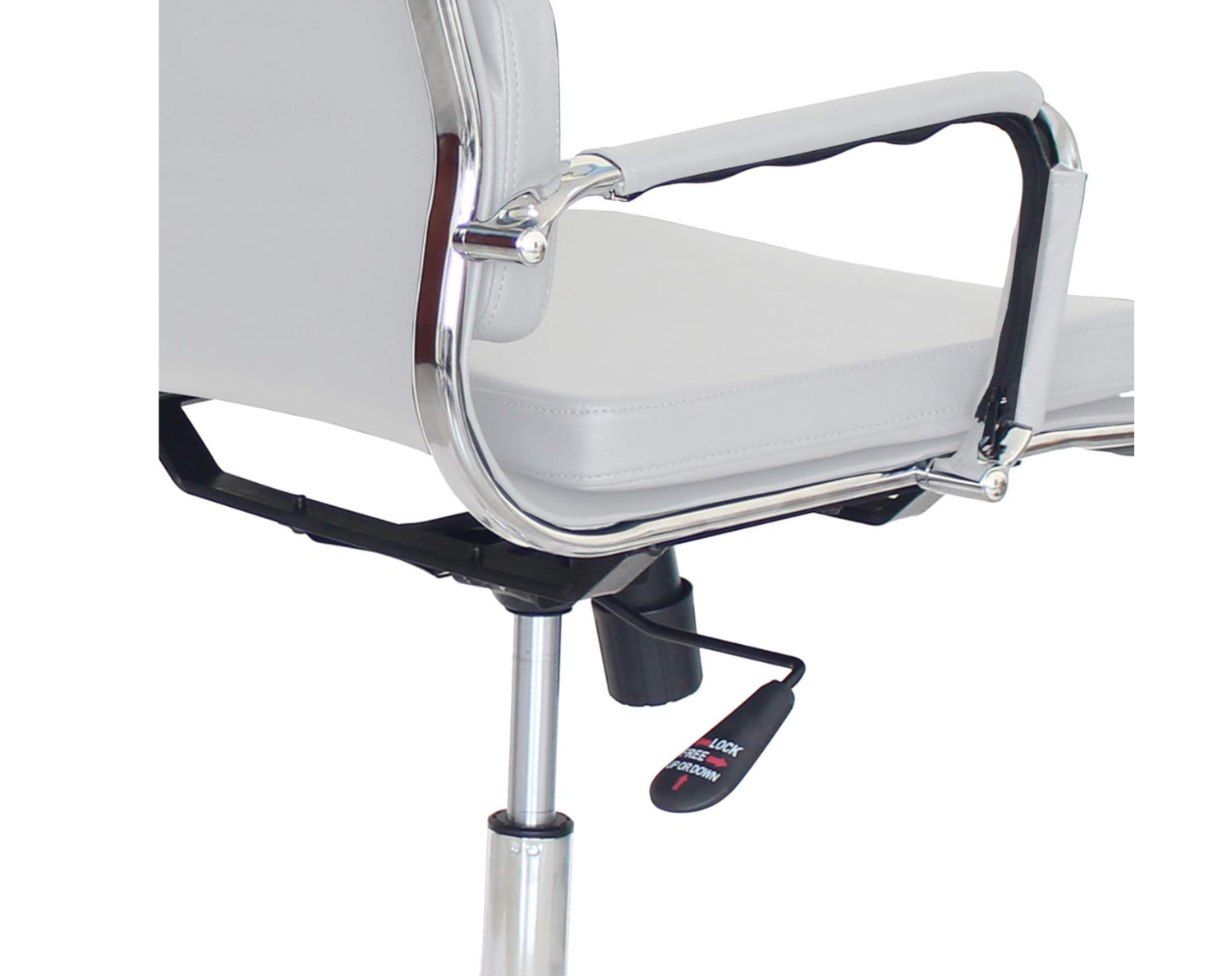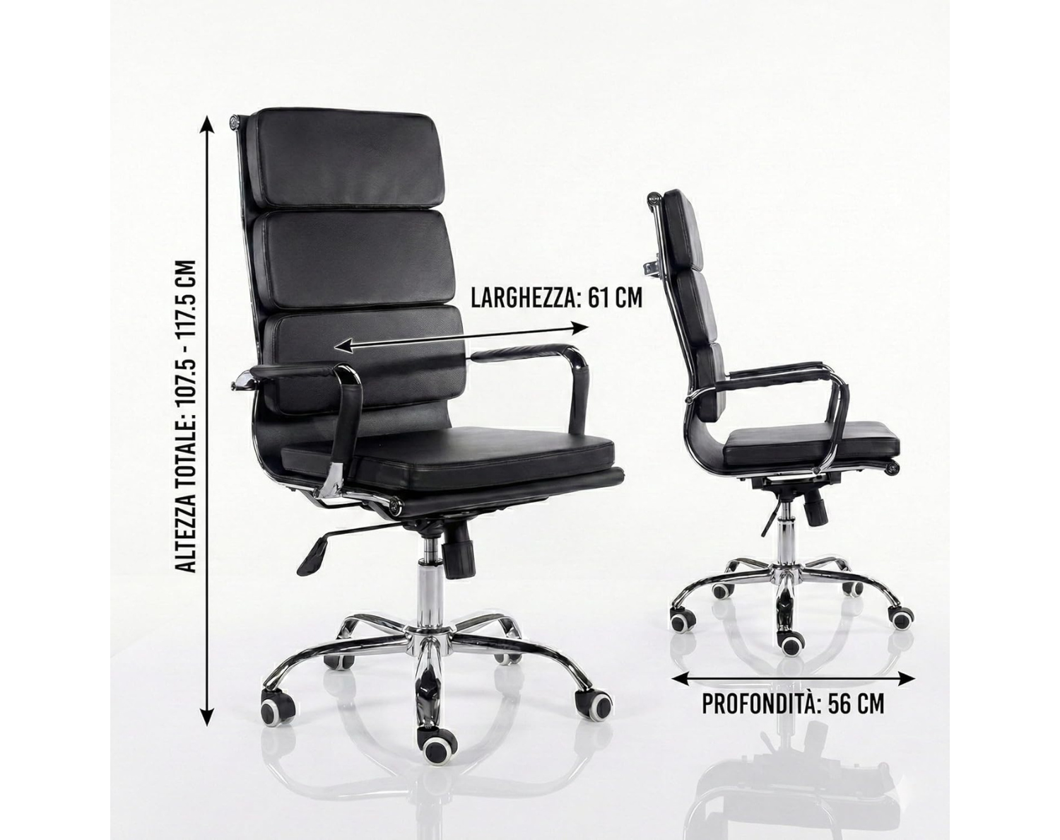 The Mito executive chair by Cribel combines elegance and functionality for offices and executive spaces. The chromed metal frame ensures stability and durability, while the faux leather seat with polyurethane padding ensures comfort even during long work sessions. The adjustable height allows the chair to be adapted to different workstations, combining practicality and modern style.