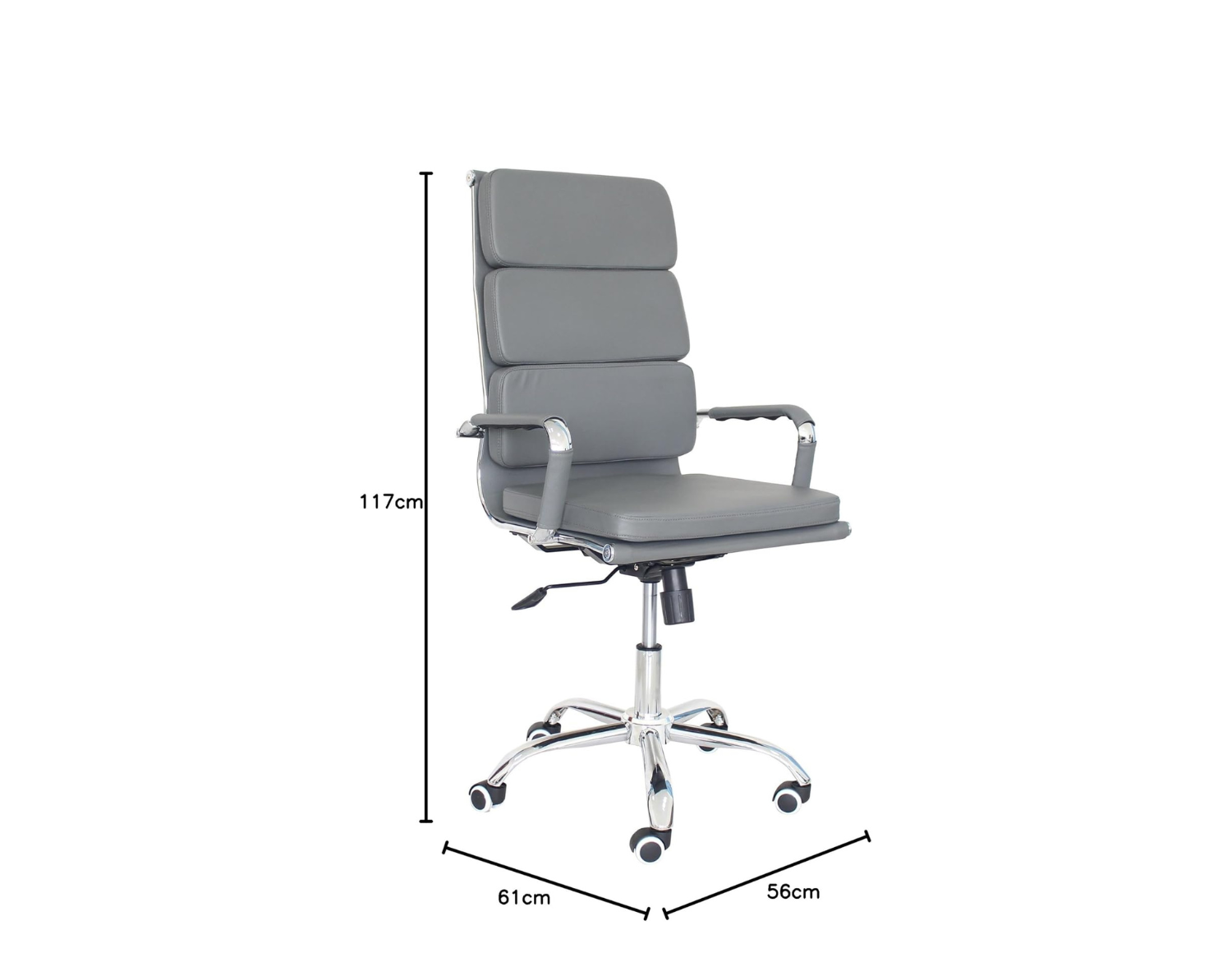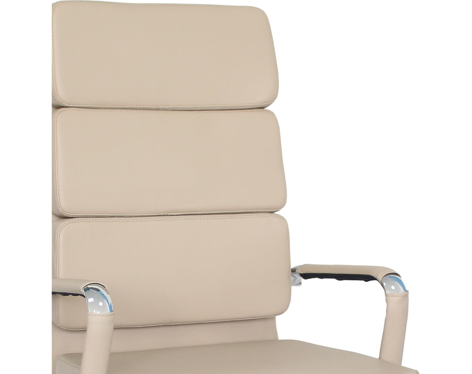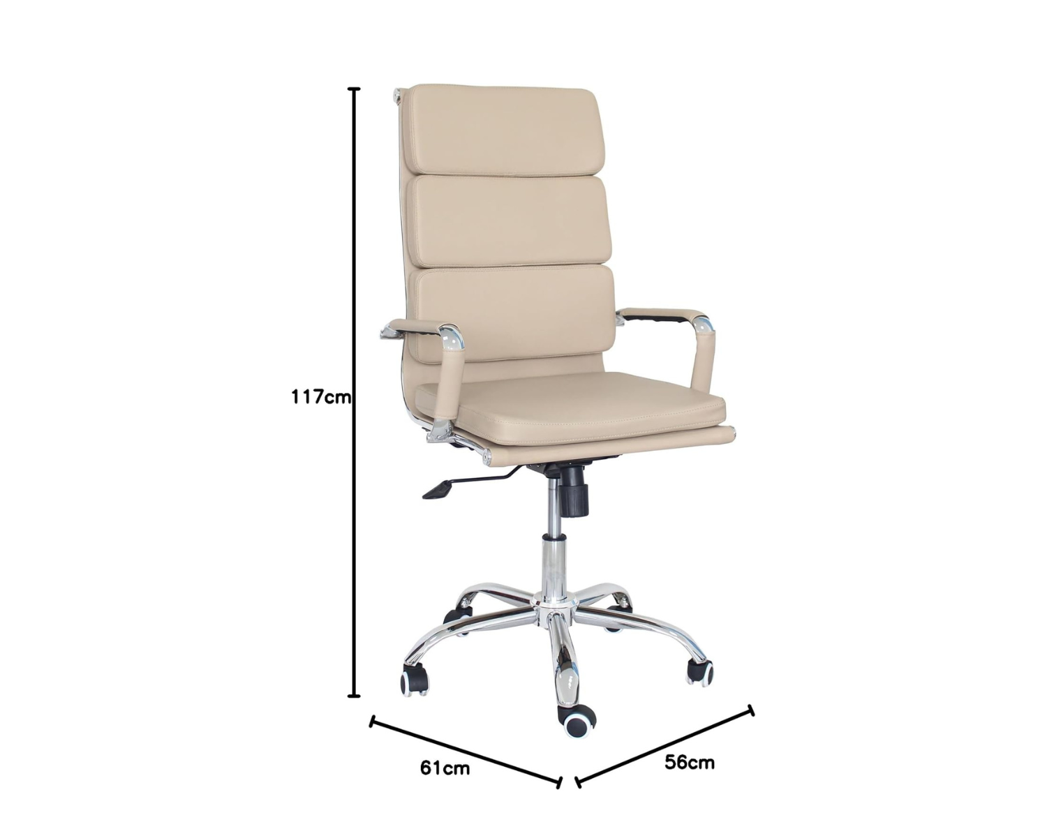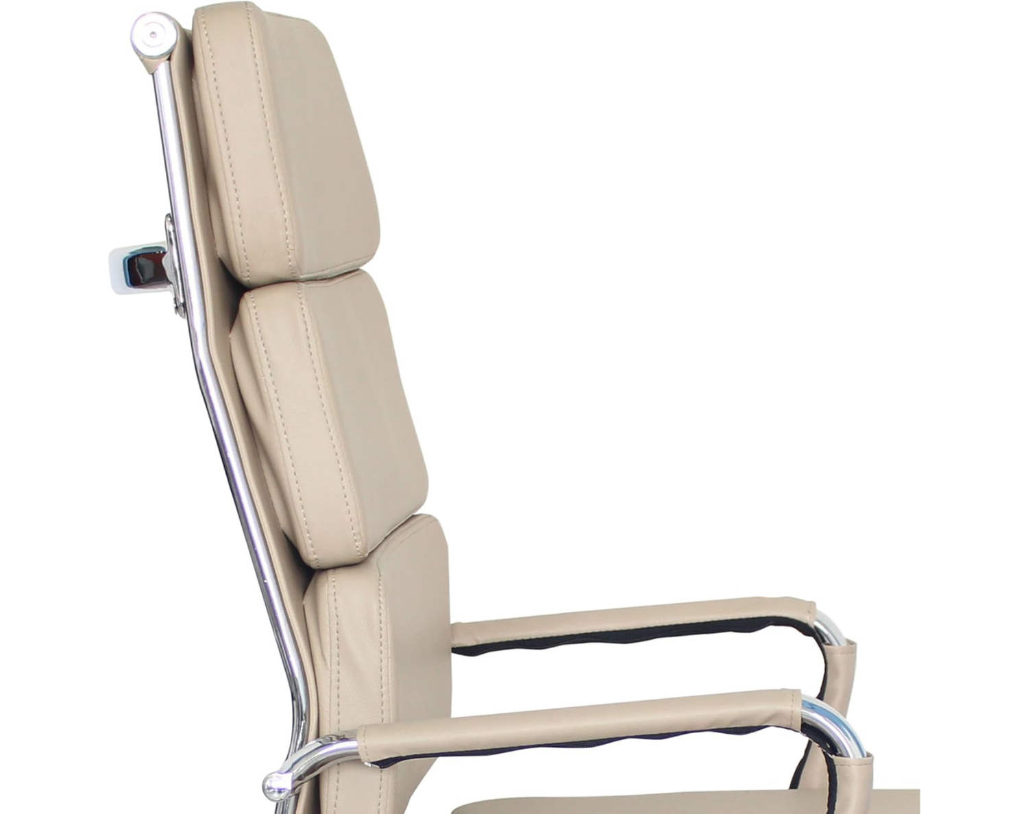 The Mito executive chair by Cribel combines elegance and functionality for offices and executive spaces. The chromed metal frame ensures stability and durability, while the faux leather seat with polyurethane padding ensures comfort even during long work sessions. The adjustable height allows the chair to be adapted to different workstations, combining practicality and modern style.