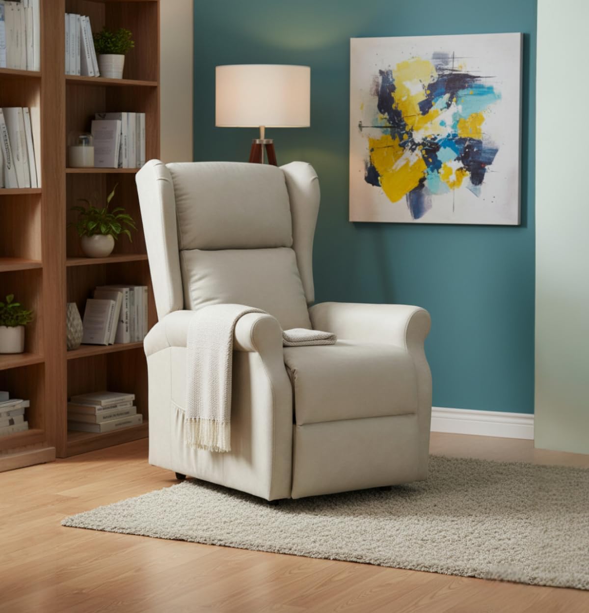 La struttura solida in legno e metallo garantisce stabilità e lunga durata, mentre l’imbottitura offre un comfort elevato. Lo schienale e il poggiapiedi sono regolabili tramite pulsantiera laterale e la funzione alzapersona aiuta ad alzarsi facilmente e in sicurezza.