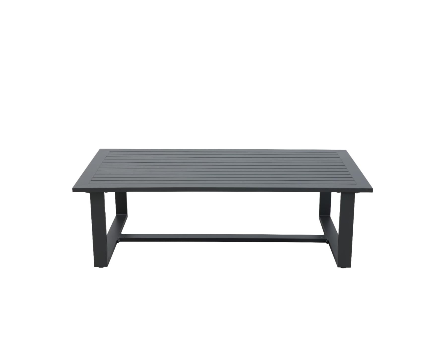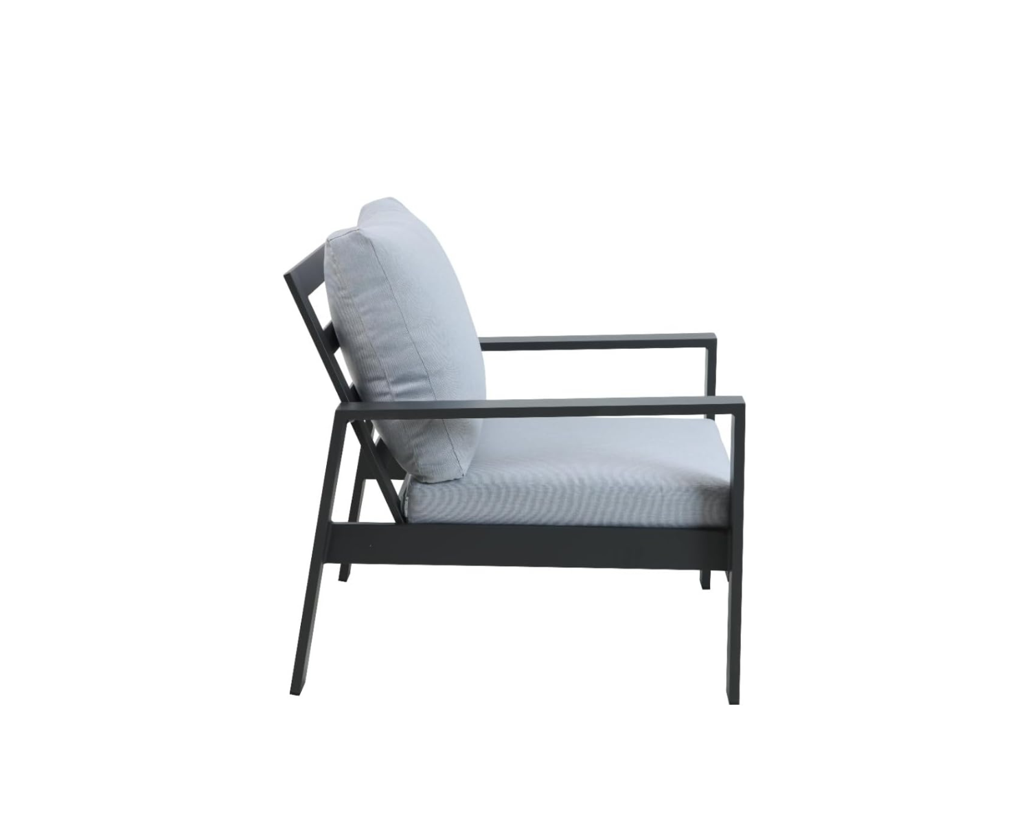 The matching cushions in anthracite gray fabric ensure comfort and a welcoming feel, creating a refined and modern atmosphere perfect for relaxing outdoors. The linear and contemporary design easily integrates into modern settings, enhancing any outdoor space.