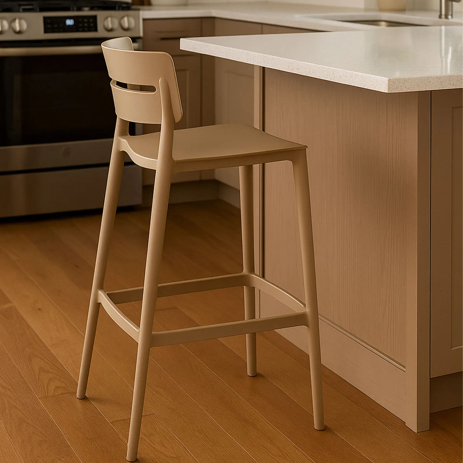 Realizzati in polipropilene resistente e leggero, gli sgabelli assicurano stabilità e durata nel tempo, perfetti sia per uso domestico che professionale. Il design semplice e versatile si adatta facilmente a diversi stili di arredamento, dai moderni ai classici, valorizzando cucina, bar o spazi conviviali.